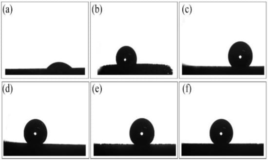 Constructing an extremely nonwetting surface onto different substrates with the water contact angles (WCAs) more than 150° is a great challenge for its tremendous application in areas, such as self-cleaning [] and anti-icing surfaces [,] drag reduction [], and oil-water separation []. Recently, membrane-based metal meshes with special surface wettability have attracted a significant amount of attention for the treatment of increasing industrial oily waste water, as well as frequent oil spill accidents [,]. Due to its excellent thermal and electrical properties, copper, an essential engineering material, is widely used in many fields, including the chemical industry, electronic industry, and computer technology [,]. Also, copper foil, meshes, or porous substrates are often widely chosen as oil-water separation materials by researchers because of its availability, low cost, and superior mechanic properties and high oil-water separation efficiency []. Oil-water separation could be used in many industrial fields, especially in a crude-oil-treating facility, which could be found from some excellent industrial reports [,]. In the past several years, a lot of methods were reported for processing copper substrates with a superhydrophobic surface for oil–water separation. These methods were generally carried out by electrodeposition [], chemical etching [], ultrasound irradiation [], chemical vapor deposition (CVD) [], and so on.