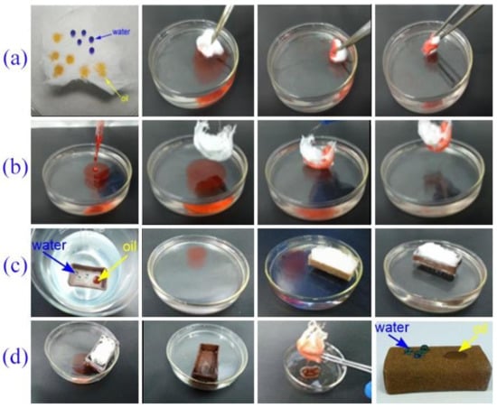 - Wang, B.; Liang, W.X.; Guo, Z.G.; Liu, W.M. Biomimetic Super-Lyophobic and SuperLyophilic Materials Applied for Oil/Water Separation: A New Strategy Beyond Nature. Chem. Soc. Rev. 2015, 44, 336–361. [Google Scholar] [CrossRef] [PubMed]