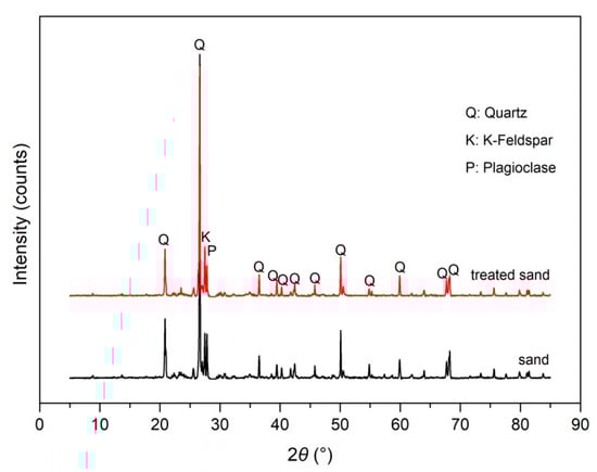 The XRD tests results of (a) sand and (b) polymer-treated sand.