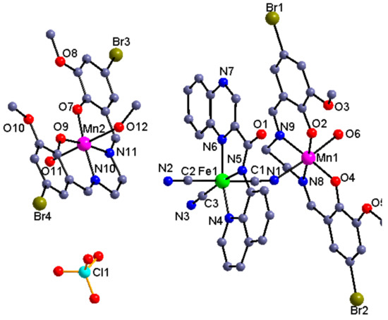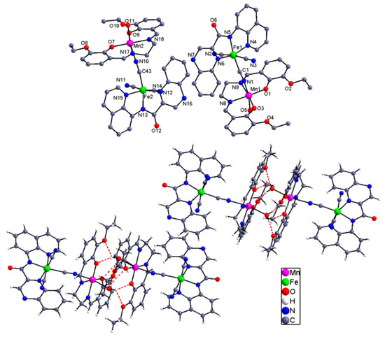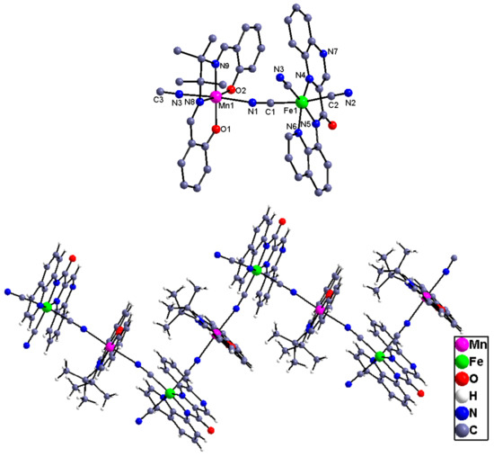 - Senapati, T.; Pichon, C.; Ababei, R.; Mathonière, C.; Clérac, R. Cyanido-Bridged Fe(III)–Mn(III) Heterobimetallic Materials Built From Mn(III) Schiff Base Complexes and Di or Tri-Cyanido Fe(III) Precursors. Inorg. Chem. 2012, 51, 3796–3812. [Google Scholar] [CrossRef]