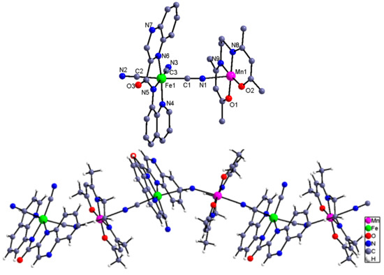 - Zhang, H.; Xue, C.; Shi, J.; Liu, H.; Dong, Y.; Zhao, Z.; Zhang, D.; Jiang, J. Coordination Field Tuned Cyanide-Bridged Polynuclear and One-Dimensional Heterobimetallic Complexes: Synthesis, Crystal Structures, and Magnetic Properties. Cryst. Growth Des. 2016, 16, 5753–5761. [Google Scholar] [CrossRef]