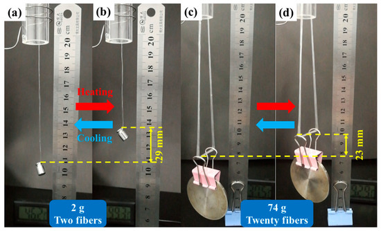 - Haines, C.S.; Lima, M.D.; Li, N.; Spinks, G.M.; Foroughi, J.; Madden, J.D.; Kim, S.H.; Fang, S.; de Andrade, M.J.; Göktepe, F. Artificial muscles from fishing line and sewing thread. Science 2014, 343, 868–872. [Google Scholar] [CrossRef]