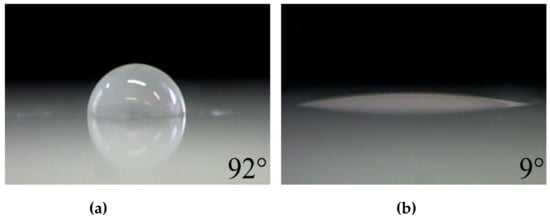 - Gotoh, K.; Yasukawa, A.; Kobayashi, Y. Wettability characteristics of poly(ethylene terephthalate) films treated by atmospheric pressure plasma and ultraviolet excimer light. Polym. J. 2011, 43, 545–551. [Google Scholar] [CrossRef][Green Version]