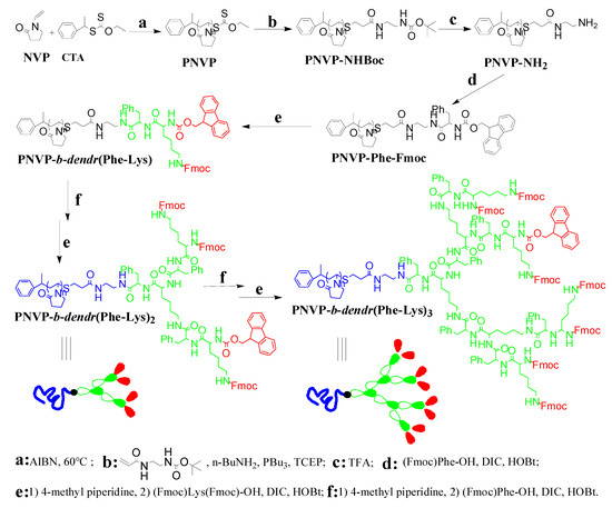 2.3. Synthesis of PNVP-b-dendr(Phe-Lys)n (n = 1–3)