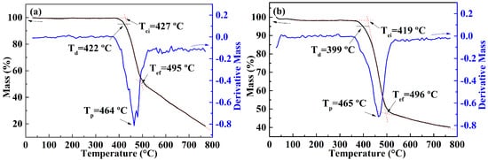 Thermogravimetric (TG) and differential thermogravimetric (DTG) curves for PITID-1 (a) and PITID-2 (b).
