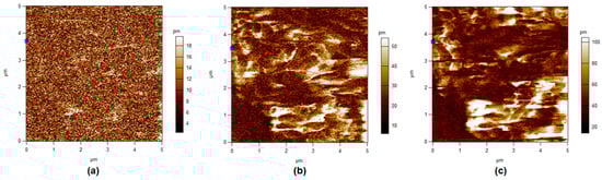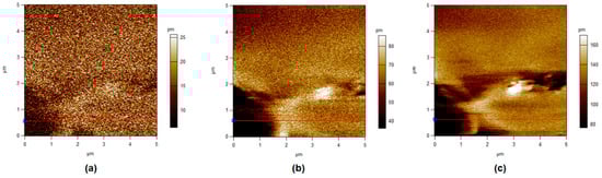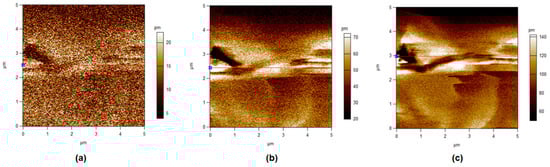 PFM Amplitude retrace of PVDF/TPU (1:1) at different applied voltages. (a) 1 V, (b) 5 V, and (c) 10 V.