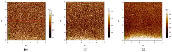 PFM Amplitude retrace of PVDF/TPU (3:1) at different applied voltages. (a) 1 V, (b) 5 V, and (c) 10 V.
