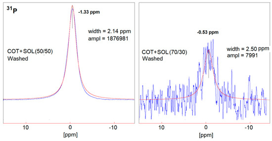 Solid state 31P (right) NMR spectra of COT + SOL (50/50) (left) and COT + SOL (70/30) (right) after washing.