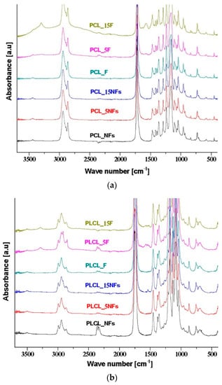 ATR–FTIR spectra of (a) PCL, (b) PLCL, and (c) PLLA nanofibers and films before and after the aminolysis treatment.