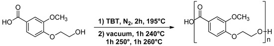 - Pang, C.; Zhang, J.; Zhang, Q.; Wu, G.; Wang, Y.; Ma, J. Novel vanillic acid-based poly(ether-ester)s: From synthesis to properties. Polym. Chem. 2015, 6, 797–804. [Google Scholar] [CrossRef]