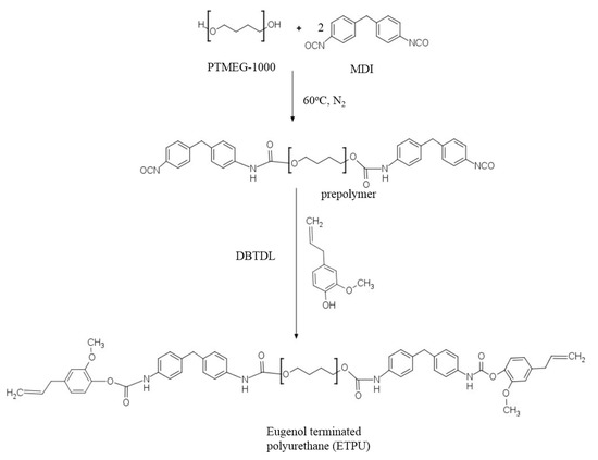 2.2. Synthesis of Eugenol-terminated Polyurethane (ETPU)