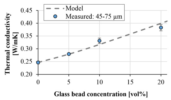 Comparison of the measured and modeled thermal conductivity (glass bead size: 45–75 µm).