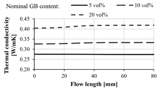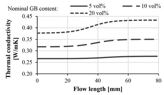 Calculated thermal conductivity of glass bead (45–75 µm)-filled polypropylene along the flow length.