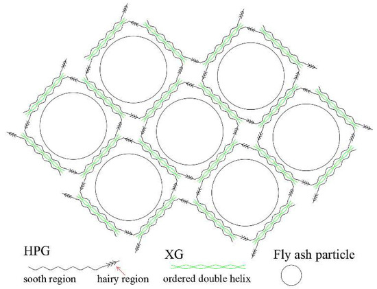 Figure 11. Schematic diagram of network structures between hydroxypropyl guar gum (HPG) and XG [51].