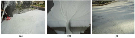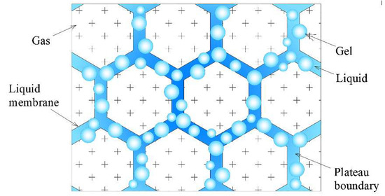 Zhang [58,59] and others combined gel and foam to form a foam gel. The effects of thickeners and crosslinking agents on the foam gel were discussed. The gelation time was found to be reduced and the thermal stability improved as compared with conventional foam. Thickeners and crosslinking agents are polymers. Subsequently, the self-made foaming agent was mixed with the two polymers to form foam gel by air foaming. The apparent viscosity of the gel decreased with the increase in shear rate, which is consistent with the law of shear thinning of fluids. For high shear rates, thickeners and crosslinking agents do not occur cross-linking reactions in the foam film, which can satisfy the wide range of flow and diffusion in goaf. It was shown that 0.4% foaming agent, 0.3% thickener and 0.3% crosslinking agent could obtain a foam gel with high foaming ratio, strong stability and good fire resistance (Figure 14). Subsequently, at this concentration, the effects of the foaming ratio, addition of salts (NaCl, CaCl2 and AlCl3), pH value and temperature on the rheological properties of the foam gel were discussed [60]. The fire extinguishing time of thickening agent and crosslinking agent mixture at different concentrations was also examined [61].
