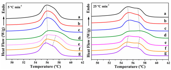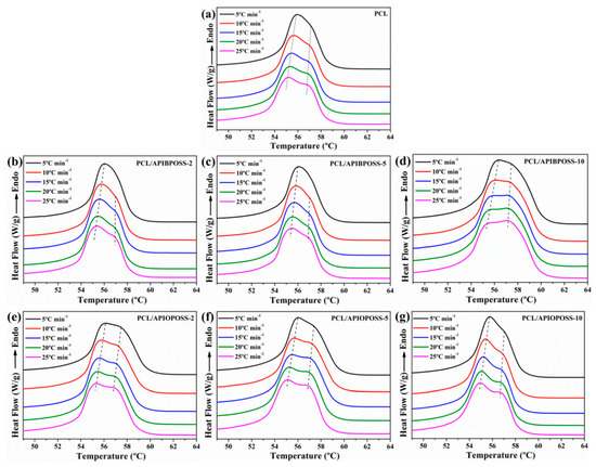 3.1. Non-Isothermal Crystallization and Melting Behavior