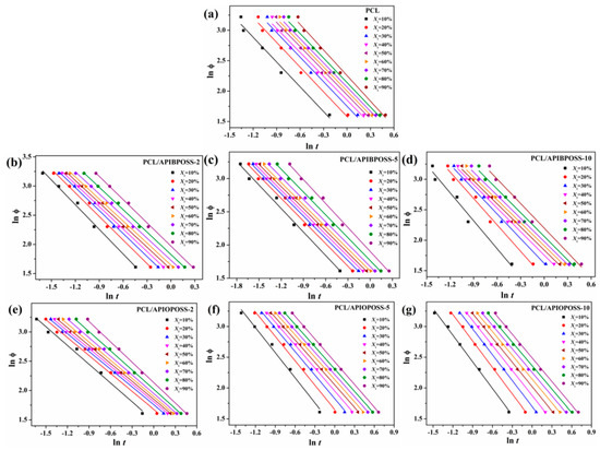 - Limwanich, W.; Phetsuk, S.; Meepowpan, P.; Kungwan, N.; Punyodom, W. Kinetics studies of non-isothermal melt crystallization of poly(ε-caprolactone) and poly(L-lactide). Chiang Mai J. Sci. 2016, 43, 329–338. [Google Scholar]