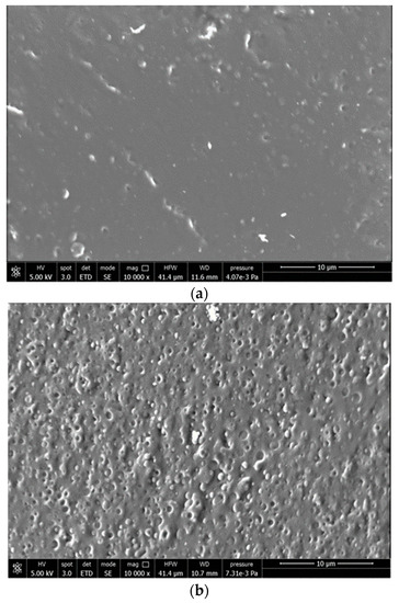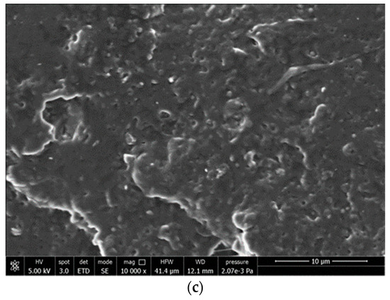 Morphological analysis on extruded filaments of PLA/PBS blends was done using FEI Quanta 450 FEG scanning electron microscope (SEM) (Thermo Fisher Scientific, Waltham, MA, USA). The cryo-fractured surface was covered with a tiny metallic layer of Au, in a way that the surface could be electrically conductive.