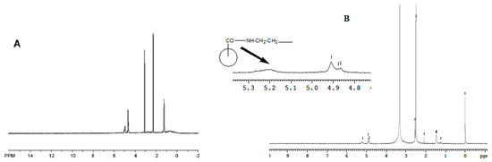 (A) 1H NMR spectrum of PLGA (B). 1H NMR spectrum of transferrin-conjugated PLGA–EDA.