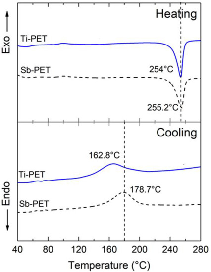 - Thier-Grebe, R.; Rabe, M. Polyester with titanium dioxide, catalyst ‘C-94’. Prop. Acordis 2000, 119–128. Available online: https://www.tib.eu/en/search/id/BLSE%3ARN073847072/Polyester-With-New-Titanium-Dioxide-Catalyst-C/ (accessed on 21 November 2019).