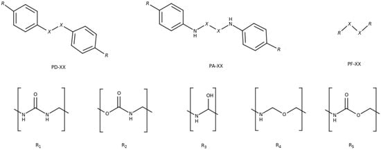 In this subsection, the effect of the chemical structure of the polymeric chain (R) and dichalcogenide bond (S-S vs. Se-Se) is analyzed. Concretely, R-PD-XX systems have been chosen to carry out such analysis, being n = 1–5 and X = S, Se. All the obtained data are collected in Table 4.