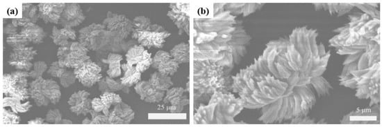Scanning electron microscopy (SEM) of Tb-BDC: (a) Top view; (b) enlarged.