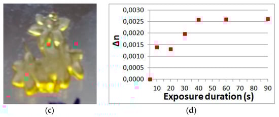 Without limitation of polymerization the layer polymerizes over its entire thickness (Figure 10b). However, a gradient object can be formed inside the layer as a result of the dependence of the refractive index on exposure (Figure 10c). The refractive index modulation was calculated using the well-known formula given in particular in [20] and the dependence of diffraction efficiency on the exposure shown in Figure 2.