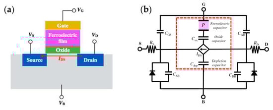 - Asai, H.; Fukuda, K.; Hattori, J.; Koike, H.; Miyata, N.; Takahashi, M.; Sakai, S. Compact model of ferroelectric-gate field-effect transistor for circuit simulation based on multidomain Landau–Kalathnikov theory. Jpn. J. Appl. Phys. 2017, 56, 04CE07. [Google Scholar] [CrossRef]