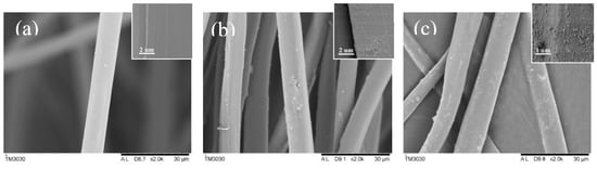 Morphology of waste silk after different treatments: (a) wSF; (b) wSF-PDA; (c) wSF-PDA/Fe.