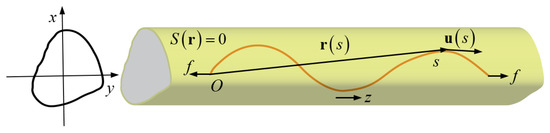 define the tangential vector and its components. As shown in [32,51], in the case of strong confinement, undulation of the chain due to thermal fluctuation is small so that . The inextensibility condition of the WLCs, [52,53,54], together with Equation (2) leads to