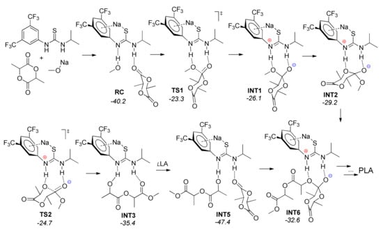 - Zhu, R.-X.; Wang, R.-X.; Zhang, D.-J.; Liu, C.-B. A Density Functional Theory Study on the Ring-Opening Polymerization of d-Lactide Catalyzed by a Bifunctional-Thiourea Catalyst. Aust. J. Chem. 2009, 62, 157–164. [Google Scholar] [CrossRef]