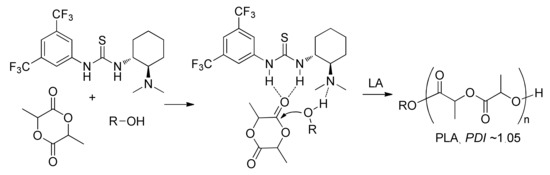 - Dharmaratne, N.U.; Pothupitiya, J.U.; Kiesewetter, M.K. The mechanistic duality of (thio)urea organocatalysts for ring-opening polymerization. Org. Biomol. Chem. 2019, 17, 3305–3313. [Google Scholar] [CrossRef]
