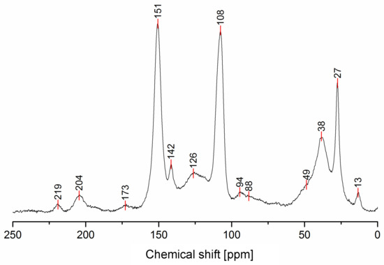 Solid-state 13C-NMR spectrum of hardened PFA.