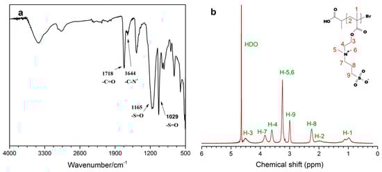 FT-IR (a) and 1H-NMR spectra (b, in D2O) of PSBMA.