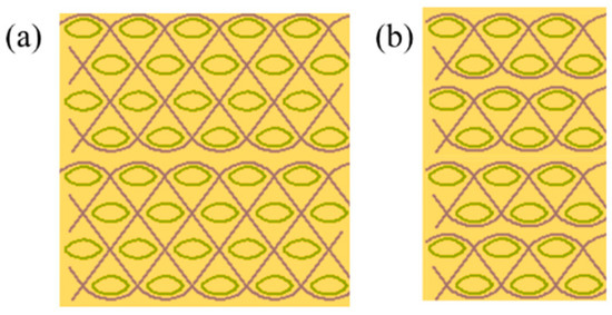 When designing and constructing multiply textile reinforced composite panels, the number of fabric plies used is a crucial factor. The use of thin 3D woven structures as advanced composite reinforcements would reduce the number for fabric plies required to reach a certain panel thickness. Figure 1 shows a 2-ply 3D woven 4-layer TTAI (Through-the-Thickness Angle-Interlock Fabric) reinforced composite and a 4-ply 2D plain weave fabric reinforced composite, which possess an equivalent thickness. The TTAI is a type of solid 3D woven fabric structure [8], which demonstrates high tensile, compressive and flexural performance [9]. Conventionally, it is composed by two sets of yarns, the straight wefts and binding (or interlocking) warps, as illustrated in Figure 1a. The straight wefts have alternate positions in different layers, which leaves enough space for binding yarns that go from top layer to bottom in a smooth path to bind layers together. The TTAI fabrics are highly mouldable because of their small resistance to shear deformation [10]. Hence, it has the potential to reinforce doubly-curved shapes without requiring time- and labour-consuming cutting or patterning processes [11]. Previous research on the effect of reinforcement continuity also indicates that the use of continuous fabric reinforcements encourages better ballistic resistance [12,13].