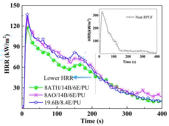 Heat release rate (HRR) curves of typical flame retardant rigid polyurethane foams (RPUFs).