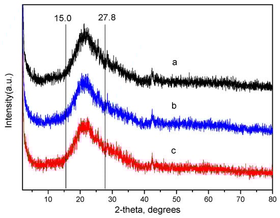 XRD patterns of catalysts (a) catalyst 1, (b) catalyst 2, (c) catalyst 3.