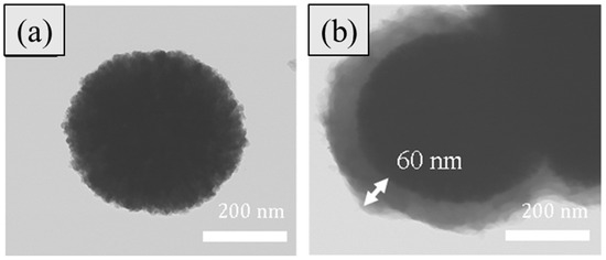 As for the MR materials, various types of core-shell nanoparticles have been widely used because of their synergistic effect between core and shell including suspension stability [4,12,13,14], while until now, the most widely used magnetic materials for MR suspensions are soft-magnetic carbonyl iron (CI) microspheres because of their controllable and superior magnetic properties and appropriate particle size [15,16,17]. However, despite the excellent merits of CI particles as MR materials, CI-based MR suspensions generally cause problems of settling and redistribution because of the high density of CI particles (density of around 7.91 g/cc), limiting their engineering applications [18,19,20]. To improve this drawback, magnetite (Fe3O4) particles with sufficient magnetic behavior and lower density (density: 4.32 g/cc) than CI have been applied. However, the problem of precipitation still remains, and there is also a problem that Fe2+ contained in Fe3O4 can be easily oxidized and corroded [21,22]. A solution to this problem is to coat the surface of Fe3O4 particles with polymers [23,24]. Meanwhile, among various polymers, when the conducting polymer is used in the form of a conductive shell-magnetic core, not only MR but also ER characteristics under an electric field can also be obtained [25,26].