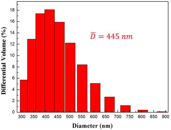 Figure 3. Size distribution of Fe3O4/POA particles.