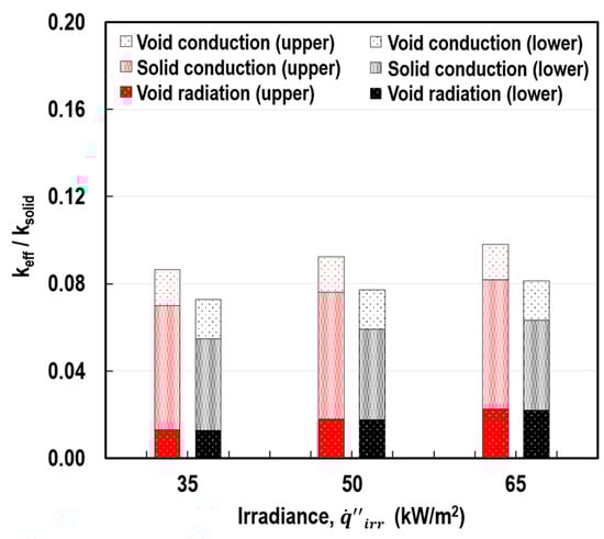 In this study, the keff measurement of a porous medium represents the ability to transfer (or insulate) heat through the medium’s body, and the components of keff indicate the capabilities to transmit heat in their respective modes. Note that kc_solid and kc_void do not indicate the true conductivities of the solid-particle and the gas filling pores; rather, they imply the contributions of solid and void conductions to the overall heat transfer in porous media, respectively. Thus, the determinations of keff as well as kc_solid, kc_void, and kr_void, were critical to achieving the objectives of this study.