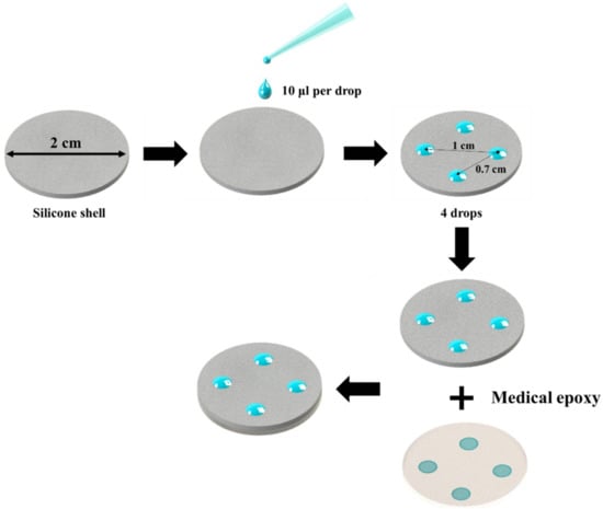 To assess the feasibility of this approach, we utilized the shell of a clinically approved silicone implant and pattern-coated the shell with several distinct dots composed of a mixture PLGA and tranilast. The pattern-coated implant was then subjected to mechanical stress mimicking the evaluation protocol needed for its approval in clinical use [,], and the patterned coatings were assessed and compared with the coating applied over the entire implant surface. To evaluate the antifibrotic effect, the pattern-coated implant was inserted in the subcutaneous space of living animals, and the tissues around the implant were biopsied and analyzed at scheduled times for 12 weeks.