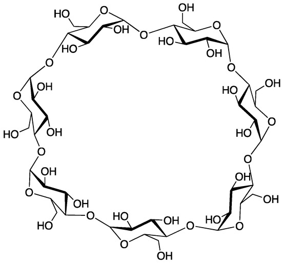 - Wimmer, T. Cyclodextrins. Ullmann’s Encyl. Indust. Chem. 2012, 11, 23–31. [Google Scholar]