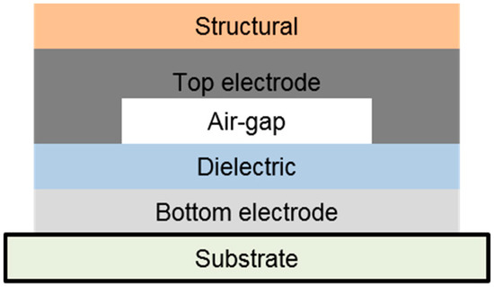 As shown in Figure 2, an air-gap is designed between the bottom and top electrodes. If an external force is applied to the sensor, the air-gap decreases, and the two electrodes can short. In order to prevent the problem, a dielectric layer was coated on the bottom electrode.