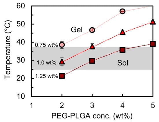 - Shim, M.S.; Lee, H.T.; Shim, W.S.; Park, I.; Lee, H.; Chang, T.; Kim, S.W.; Lee, D.S. Poly(d,l-lactic acid-co-glycolic acid)-b-poly(ethylene glycol)-b-poly (d,l-lactic acid-co-glycolic acid) triblock copolymer and thermoreversible phase transition in water. J. Biomed. Mater. Res. 2002, 61, 188–196. [Google Scholar] [CrossRef]