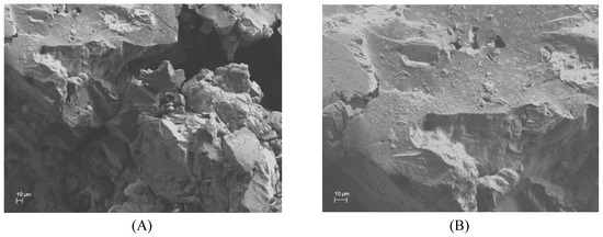Firstly, between 30 and 102.4 °C for β-CDs and 83.85 °C for HP-β-CDs, was due to dehydration and accounted for around 13.25% and 3.45, respectively, of the mass reduction. The second, between 290 and 342 °C (exothermic) was due to decomposition of the organic groups, with a mass loss of 76.8% and 41.8%, respectively. The respective CD-EPI polymers (Figure 8C,D) also presented three phases of weight loss, but the curves show a similar trend and a softer descent than non-polymerized CDs, as well as lower mass losses in the exothermic section (290 and 342 °C), which were 36.4% for β-CD-EPI and 31.28% for HP-β-CD-EPI polymers.