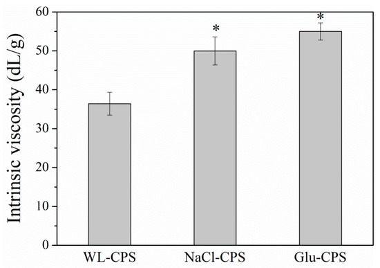 Intrinsic viscosity of N. flagelliforme polysaccharides. * Statistically different from the WL-CPS (P < 0.05).