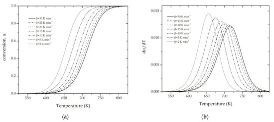 Isoconversional methods have been extensively used to estimate Ea accurately by using differential or integral methods (in either isothermal or non-isothermal conditions). Differential methods are based on Equation (3), which can be used for whatever thermal program. This time-domain expression can be converted into a temperature-domain by assuming the heating rate (β).