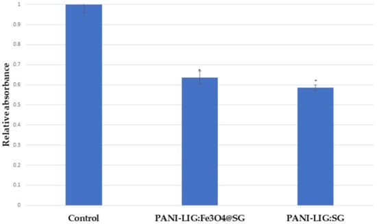 In this context, we combined the conductive polymer (PANI-LIG) with magnetic nanoparticles loaded with Gentamicin sulfate (Fe3O4@GS) to increase the antimicrobial applications of the drug by inhibiting the adherence and suppressing the development of microbial biofilm [26,27]. Further, we sought to potentiate the therapeutic effects of the antibiotic [28].