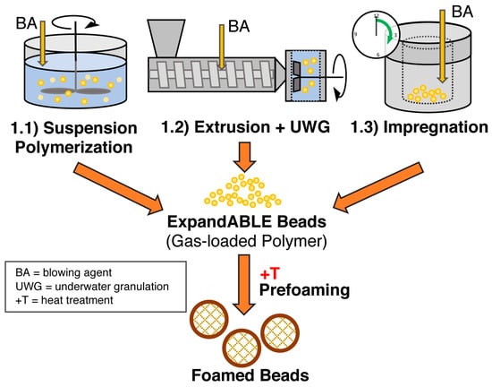 - Raps, D.; Hossieny, N.; Park, C.B.; Altstädt, V. Past and present developments in polymer bead foams and bead foaming technology. Polymer 2015, 56, 5–19. [Google Scholar] [CrossRef]