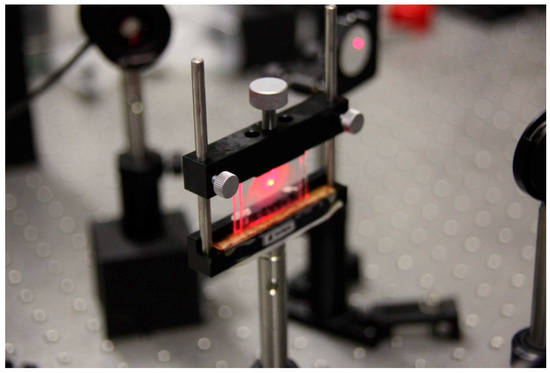 Photopolymers are a type of holographic recording material that are used in many optical applications due to their flexibility, low cost, and easy preparation [1,2,3,4,5,6]. In these materials, different physical properties must usually be optimized, for example, energetic sensitivity to decrease the energy required during the recording process, spectral sensitivity to select a specific wavelength, or the spatial frequency to obtain high fidelity in the reconstruction of the hologram [7,8].